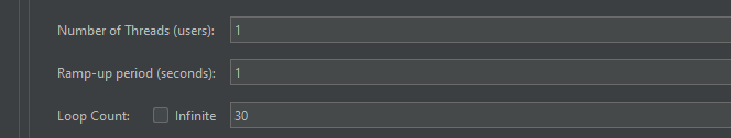 초당 1개의 요청을 30회 반복해서 보내는 설정을 통해 테스트를 진행했다.