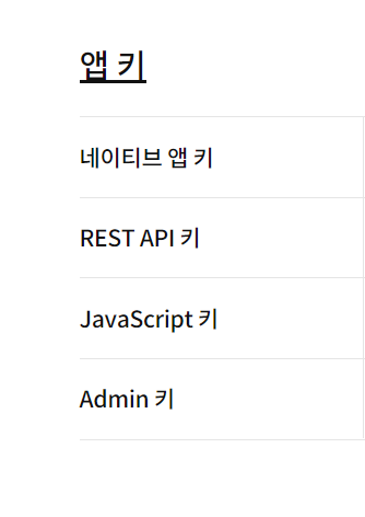 이런식으로 키값을 확인할 수 있다. 여기서 REST API키 값을 입력해주면 된다.