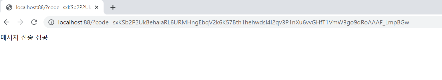 로그인을 진행 하면 KAKAO에서 내가 RedirectUri로 설정한 http:/localhost:88 로 인가코드값을 던져준 후 호출하게 된다.