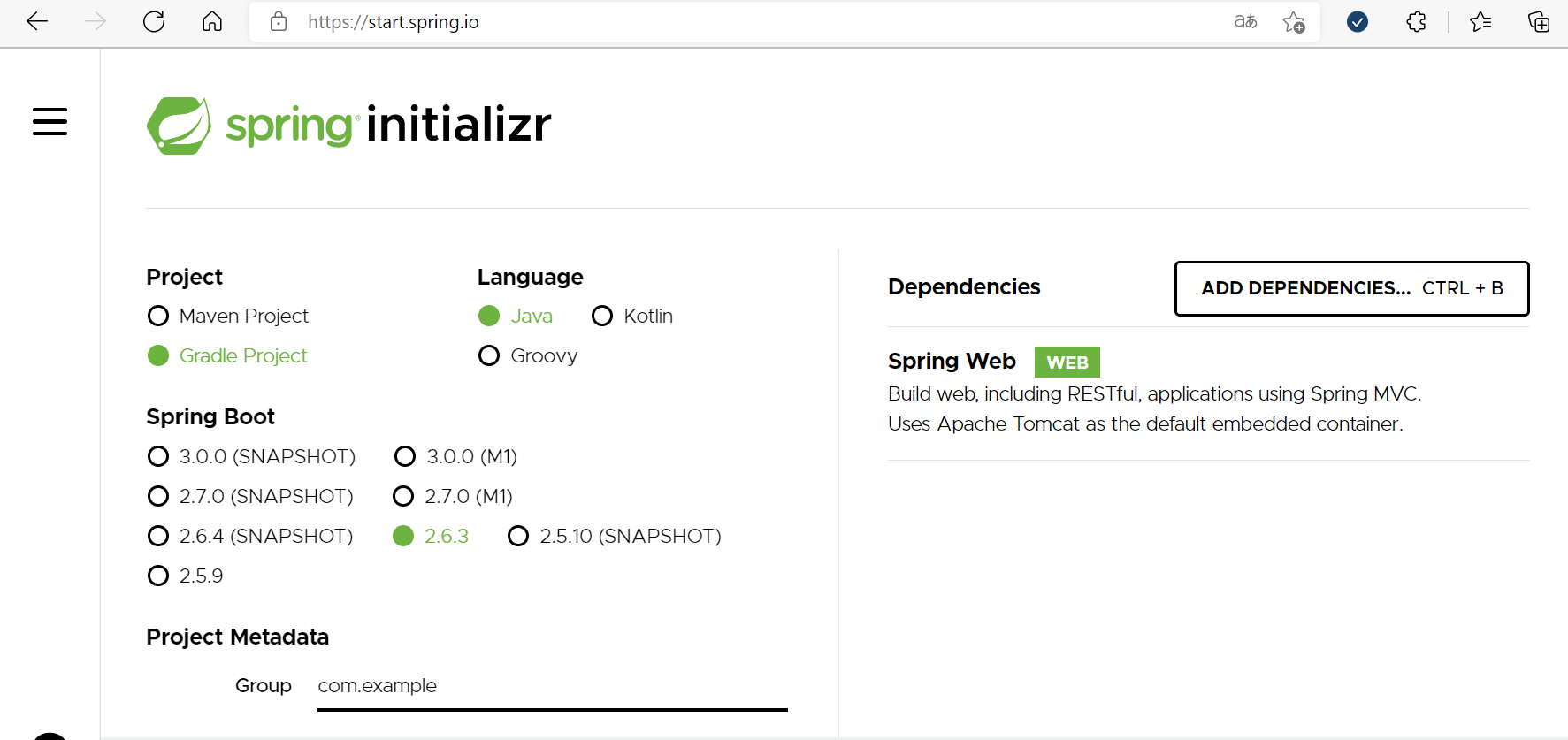 implementation 'org.springframework.boot:spring-boot-starter-web'