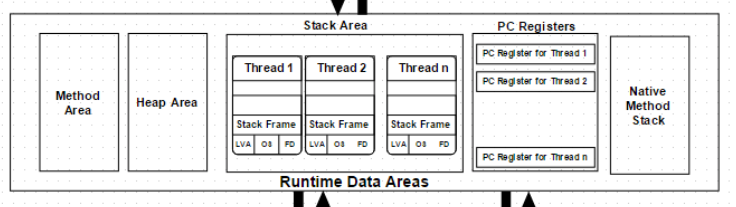 런타임 데이터 영역은 5개의 주요 구성 요소로 나뉜다.