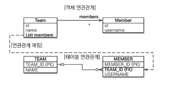 DB에서는 FK가 Member에 있지만, 객체에선 Team이 주인으로 Member를 관리하기 때문에 발생하는 관계이다.