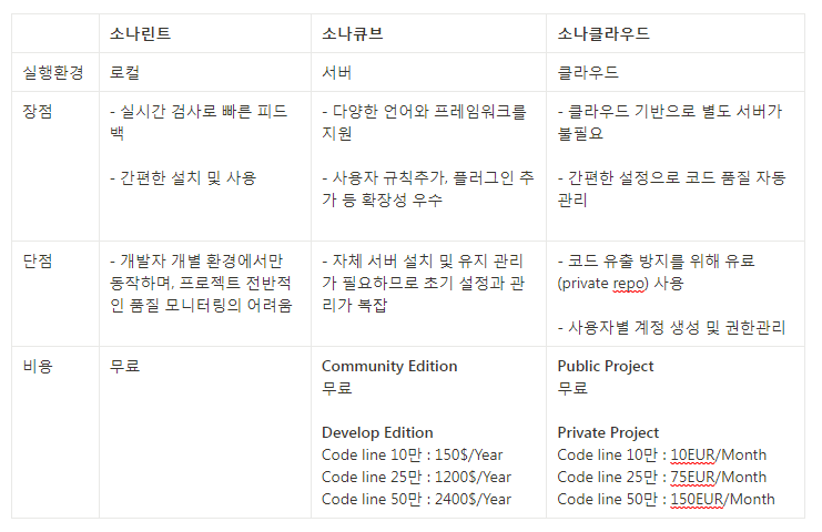 그래서 정적분석툴에 대해 조사해보니, 소나큐브가 압도적으로 레퍼런스도 많고 지속적인 버전관리도 되고 있어 강력한 후보군으로 추천하고 싶어졌다.